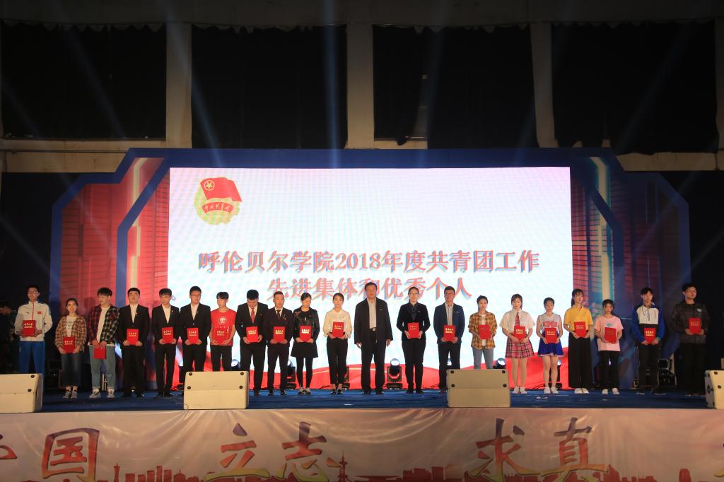 在第一篇章中對呼倫貝爾學院2018年度共青團工作先進集體和優秀個人進行了表彰,校黨委書記韓猛對獲獎單位及個人表達了祝賀并為獲獎代表頒發證書。