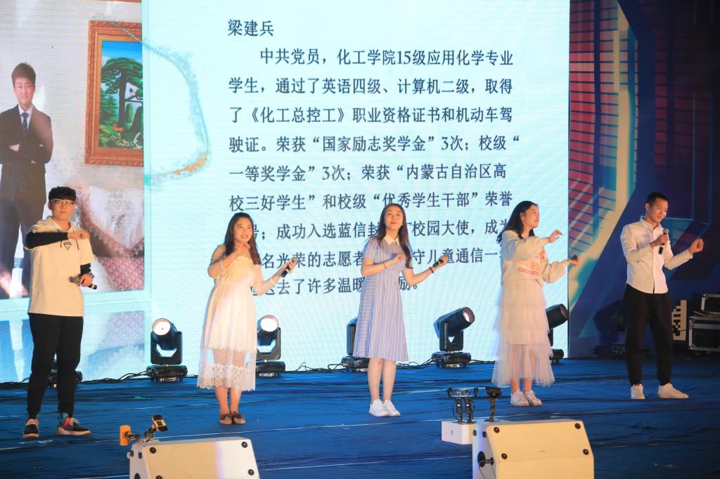 我校科技創新代表、自強之星代表、十佳大學生代表共同演唱了《強國一代有我在》展現了呼院青年崇德、篤學、創新的精神。音詩畫《高舉團旗跟黨走》歌頌了歷久彌新的五四精神,使之成為激勵我校青年學子奮勇前進的精神力量,在新時代賡續傳承五四精神,讓五四精神不斷散發新的時代光芒。舞蹈《我們的歌》在黑與白的碰撞中讓夢想的音符飛揚,擁抱對青春的憧憬,對生命的熱愛!