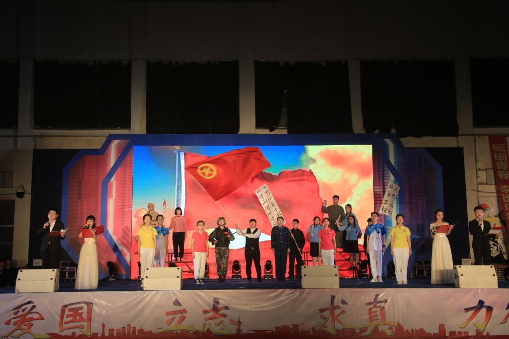 本場晚會由筑夢新時代、憶激情歲月、青春心向黨三個篇章構成,演員是來自校學生會、學生榜樣代表、民兵應急營、黨員先鋒站、“青馬班”、校園十佳歌手、我校優秀運動員、青年志愿者代表、各學院學生會代表、我校全體團干部以及各學院270余名學生,載歌載舞共同慶祝青年人的節日。