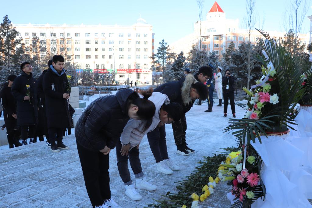青春換得江山壯,碧血染將天地紅。清明節清晨,呼倫貝爾學院140名師生懷著對革命英雄無限崇敬的心情,來到海拉爾蘇聯紅軍革命烈士陵園。莊嚴的儀式在雄壯的國歌聲中拉開帷幕。國歌唱畢,全場肅立,向為中國人民解放事業浴血奮斗的革命烈士和在四川涼山森林火災中犧牲的30位英雄三鞠躬默哀致敬。
