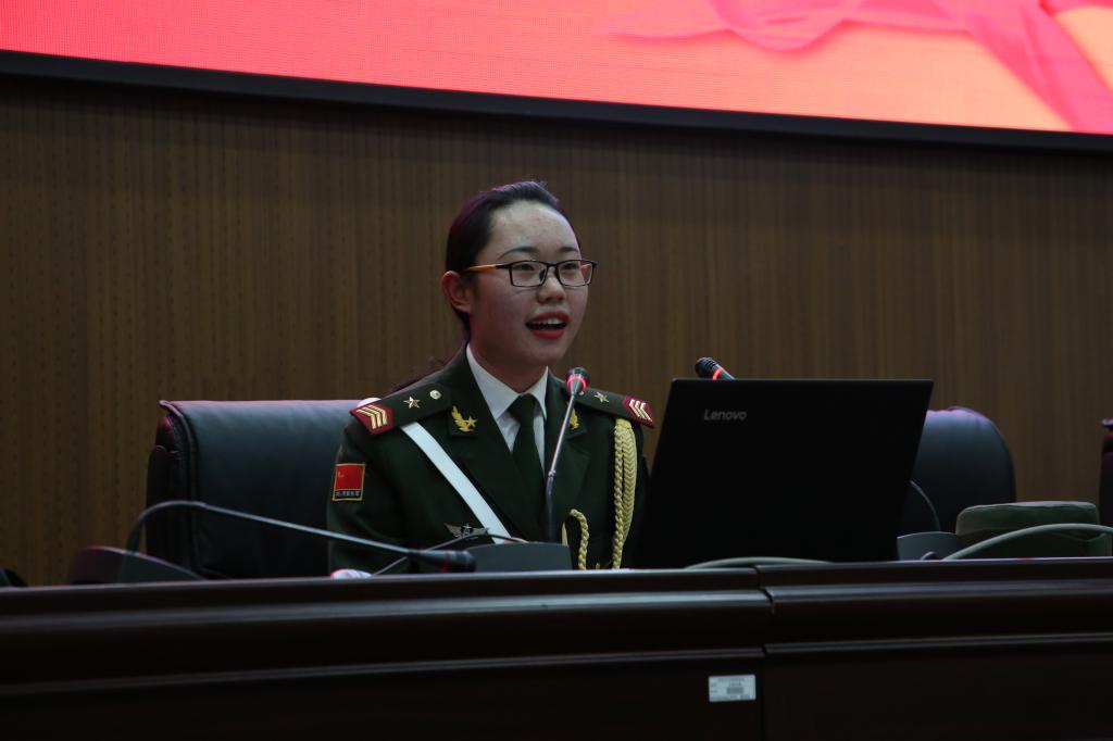 宋雪婷,先后擔任過呼倫貝爾學院民兵應急營特戰二連戰士,特戰二連三排三班班長,國旗護衛隊國旗分隊分隊長,國旗護衛隊指導員等職務,今年參加內蒙古自治區高校國旗護衛隊交流展示活動并取得優異的成績。她向同學們介紹了呼院民兵應急應這支優秀的隊伍以及隊員們的刻苦訓練、圓滿完成各項任務的艱辛歷程。
