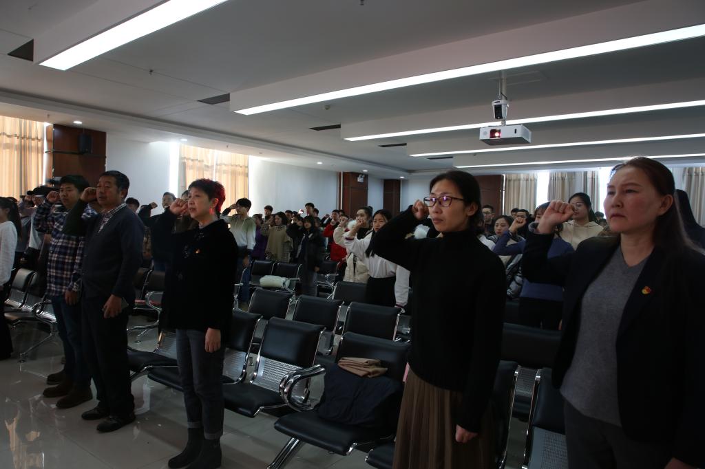 同時,法學院包來福老師和2018級法學專業(yè)的同學們到海拉爾區(qū)政府參加了“憲法宣傳周”啟動儀式暨憲法宣誓活動。包來福老師在活動現(xiàn)場開展了以“憲法講解”為主題的講座,對《中華人民共和國憲法》法律條文的內(nèi)容進行講解,用生活中實例與憲法講解相結(jié)合,讓大家對憲法有了更深刻的認識。