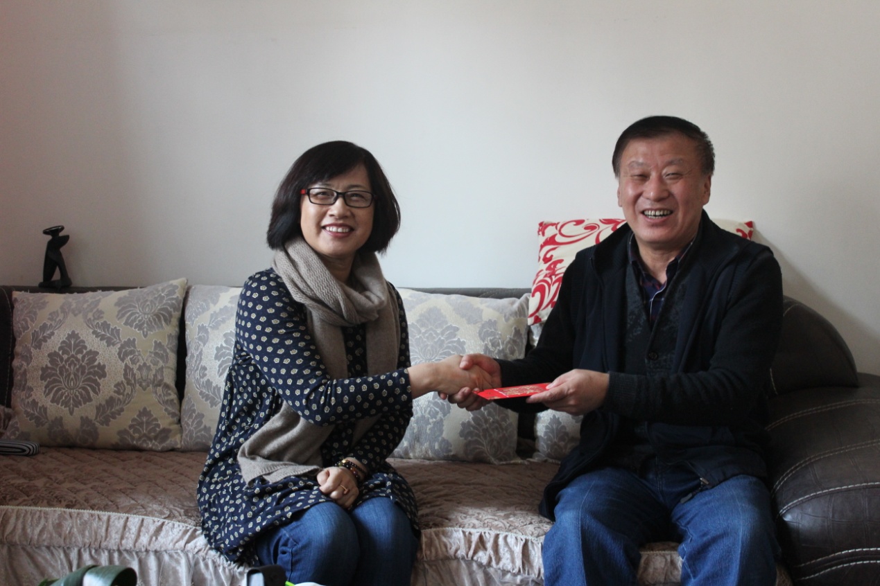 在對教育科學學院杜國民書記和音樂學院李媛老師走訪慰問中,張國棟副書記、孟祥宏副校長與他們親切交談,仔細詢問他們的病情、身體狀況和家庭情況,鼓勵他們在政府、學校的幫助和自身的努力下,積極樂觀地配合醫生治療,樹立戰勝疾病的信心,勇敢的面對生活,克服暫時的困難,保重身體,早日康復。祝他們過一個歡樂祥和的春節!