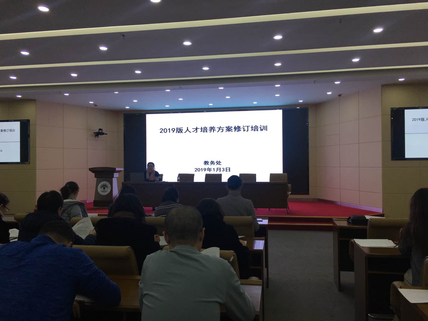 1月3日下午,我校在崇文樓A201召開2019版本科人才培養方案修訂暨教學管理人員培訓會。教務處領導班子、各學院主管教學院長、參與人才培養方案修訂的系主任、教研辦主任等相關人員近120人參加會議。