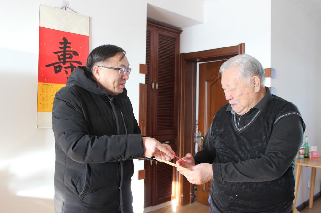 1月13日—19日,在2020年春節即將來臨之際,校黨委書記王廣利,校長王曙光,黨委副書記張國棟,副校長烏云達來、孟祥宏,紀委書記岳勇在校工會主席邱玉臣等人員的陪同下,分別走訪慰問了12名離休老干部、退休老黨員、道德模范、大病職工困難職工,給他們送上慰問金和節日祝福,帶去了學校黨委行政的親切關懷。