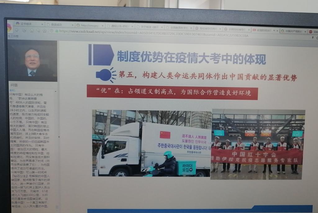 3月28日上午,專職輔導員們參加了第一次網絡直播學習活動,西安交通大學馬克思主義學院盧黎歌教授以《疫情防控治理效能與中國制度優勢》為題幫助輔導員全面了解防控形勢和應對策略,深入感受中國特色社會主義制度的優越性和國家治理能力效能的優勢,讓輔導員在未來疫情防控中有底氣、有信心開展好本職工作,直播課還邀請劉鐵、任雅才、王銀思、袁利、朱丹等歷年全國輔導員年度人物在線答疑,分享交流疫情防控經驗,輔導員們深受啟發,希望有更多機會交流。