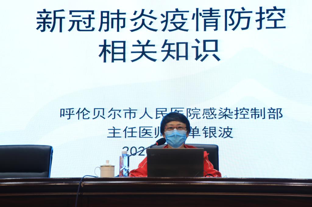 在學(xué)校統(tǒng)一安排部署下,為進(jìn)一步推動學(xué)校新冠肺炎疫情防控工作,切實(shí)提高校園疫情防控能力,做好開學(xué)各項(xiàng)工作,5月6日下午,在藝術(shù)樓音樂廳,人事處特邀呼倫貝爾市人民醫(yī)院感染控制部主任單銀波為我校教職工進(jìn)行了新冠肺炎疫情防控知識培訓(xùn)。校黨委委員、副校長烏云達(dá)來,黨委委員、副校長孟祥宏,我校副處級以上干部、各二級學(xué)院學(xué)工辦及團(tuán)學(xué)辦主任等160余人參會。培訓(xùn)會由人事處處長李躍武主持。