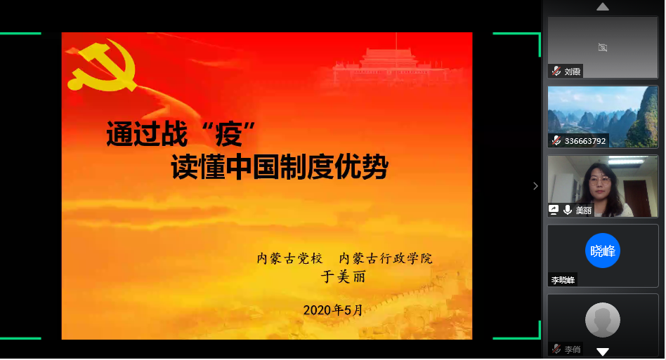 5月14下午,黨委黨校舉辦了第二十二期領(lǐng)導(dǎo)干部研修班,邀請(qǐng)內(nèi)蒙古自治區(qū)黨委組織部、宣傳部主題教育宣講團(tuán)于美麗老師,以“學(xué)習(xí)十九屆四中全會(huì)精神——通過戰(zhàn)役,讀懂中國制度優(yōu)勢(shì)”為題作專題報(bào)告,我校組織副科級(jí)以上干部300余人通過移動(dòng)客戶端聆聽了專題報(bào)告。