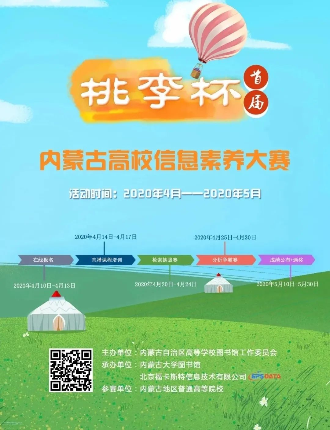2020年4月-6月舉辦的首屆“桃李杯”內蒙古高校信息素養大賽,由內蒙古自治區高等學校圖書館工作委員會主辦,作為內蒙古地區信息素養方面的高水平賽事,自4月10日啟動以來,20所高校圖書館組織6350余名學生報名參賽,全賽程歷時15天,包括4天的課程學習、5天的檢索挑戰賽以及6天的分析爭霸賽。