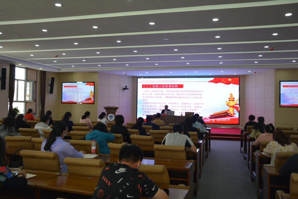 張國棟副書記以“堅定制度自信,弘揚抗疫精神,凝聚奮進力量”為主題,從學習貫徹十九屆四中全會精神出發,結合抗疫新冠疫情工作和本年度黨建工作重點任務,從“中國特色社會主義制度的顯著優勢”、“探索高校中國特色社會主義制度優勢教育的路徑”、“從抗疫精神看黨的領導制度優勢”、“結合學校基層黨建工作,加強基層黨組織建設”四個方面進行了系統講述。透過疫情防控工作,充分彰顯了中國特色社會主義制度無與倫比的優越性,中國特色社會主義制度優勢和治理效能在抗疫中發揮了決定性作用;要牢牢把握高校思想政治教育的主渠道,加強課程思政建設,積極將中國特色社會主義制度優勢教育融入到課程教學中;強化黨的領導,進一步發揮學院黨總支的政治核心作用,全面提高黨建工作水平,充分發揮支部的戰斗堡壘作用和黨員的先鋒模范作用。黨課主題鮮明、內容豐富、蘊含深刻,具有很強的針對性和指導性,大家接受了一次制度自信教育和深刻的黨性教育,更加堅定了中國特色社會主義制度自信,激發出了擔當作為的強大動力和奮進激情。