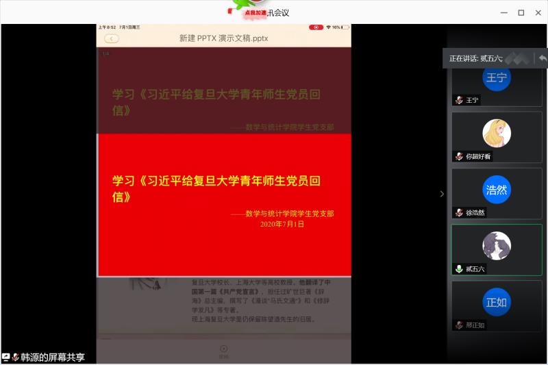 7月1日,各學院學生黨支部、大學生黨員先鋒站通過云端學習、討論、座談等多種形式學習并熱議習近平總書記給復(fù)旦大學青年師生黨員回信精神,共同慶祝中國共產(chǎn)黨成立99周年。