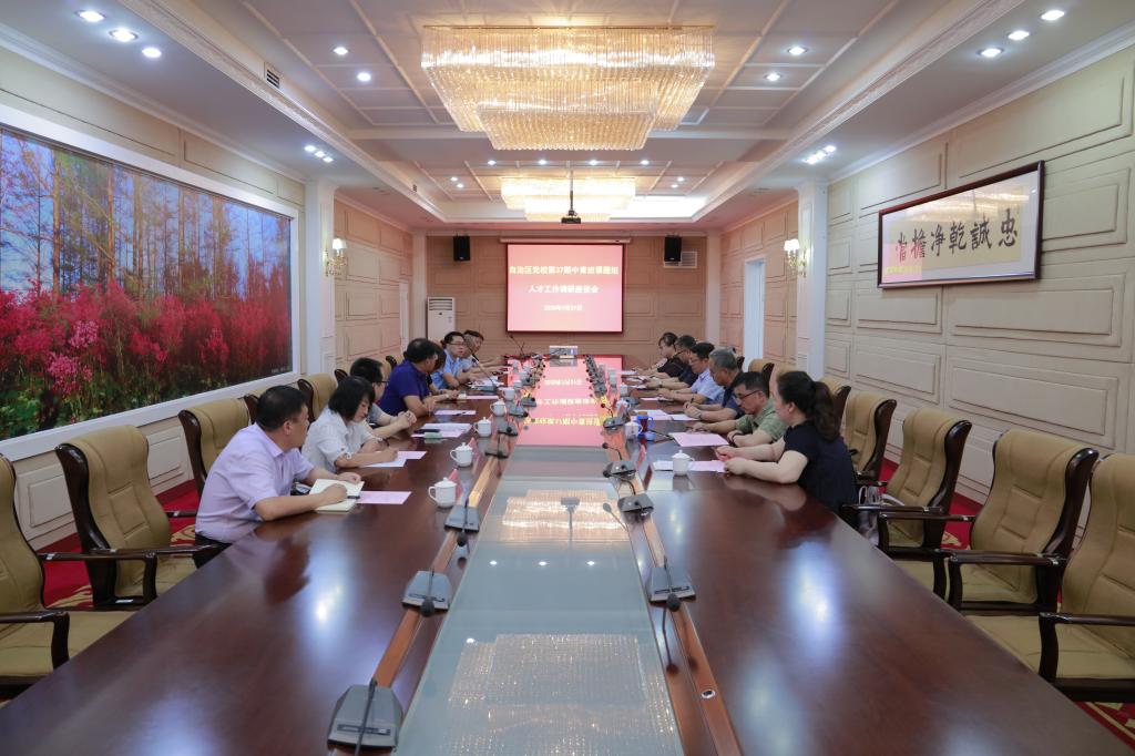 7月27日上午,內(nèi)蒙古黨校第37期中青班“完善人才支持政策、打造高素質(zhì)人才隊(duì)伍,推動(dòng)自治區(qū)高等教育高質(zhì)量發(fā)展課題調(diào)研組”人才工作調(diào)研座談會(huì)在我校圖書(shū)館三樓會(huì)議室舉行。內(nèi)蒙古黨校法學(xué)教研部教授毛原,內(nèi)蒙古自治區(qū)黨委高校工委組織部副部長(zhǎng)、教育廳人事處副處長(zhǎng)安永明一行9人和我校黨委委員、副校長(zhǎng)孟祥宏,人事處(教師發(fā)展中心)處長(zhǎng)李躍武,科學(xué)技術(shù)處處長(zhǎng)田振江,學(xué)科建設(shè)辦公室主任敖特根,組織部副部長(zhǎng)趙小花,教務(wù)處副處長(zhǎng)李偉艷出席了會(huì)議。會(huì)議由孟祥宏副校長(zhǎng)主持。