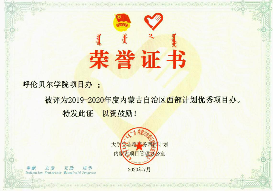 近日,大學(xué)生志愿服務(wù)西部計(jì)劃內(nèi)蒙古項(xiàng)目管理辦公室下發(fā)關(guān)于表彰“2019—2020年度內(nèi)蒙古大學(xué)生志愿服務(wù)西部計(jì)劃優(yōu)秀項(xiàng)目辦、優(yōu)秀志愿者”的決定,我校被評(píng)為“2019—2020年度內(nèi)蒙古大學(xué)生志愿服務(wù)西部計(jì)劃優(yōu)秀項(xiàng)目辦”。我校包安南、林佰慧、賈建欣3位畢業(yè)生獲得“2019—2020年度內(nèi)蒙古大學(xué)生志愿服務(wù)西部計(jì)劃優(yōu)秀志愿者”榮譽(yù)稱號(hào)。
