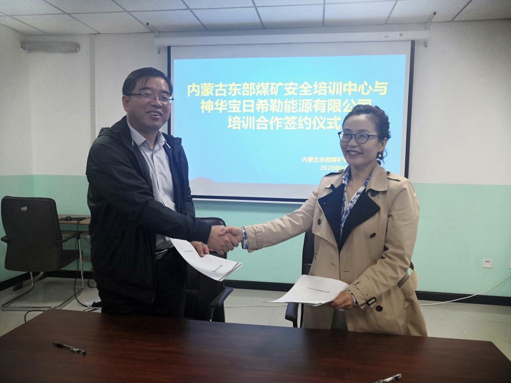 9月4日上午,神華寶日希勒能源有限公司組織人事部部長白廣福、培訓中心主任任洪清到內蒙古東部煤礦安培中心,就神寶集團安全培訓合作事宜洽談并簽訂合作協議,簽約儀式在中心會議室舉行。繼續教育學院院長莎茹莉、副院長孫志文及安培中心相關人員出席簽約儀式。