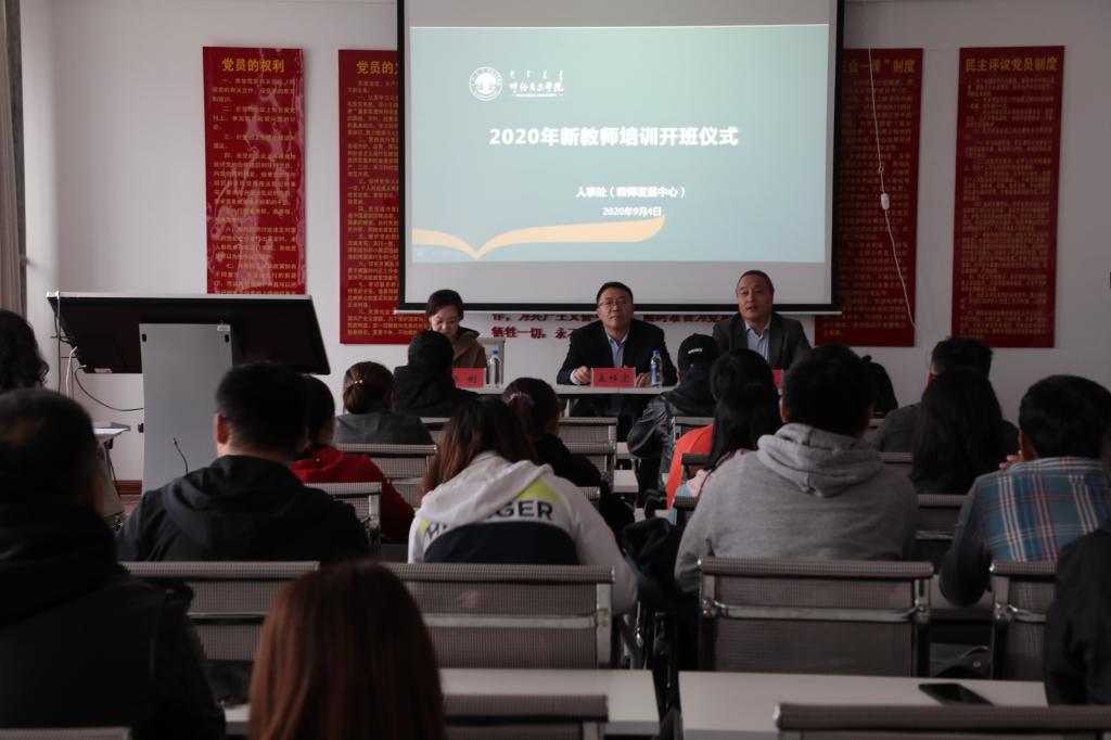 為提升新入職教師教學(xué)技能,樹(shù)立良好道德風(fēng)范,促進(jìn)青年教師快速成長(zhǎng),9月4日下午,人事處(教師發(fā)展中心)舉辦了2020年度新教師入職培訓(xùn),校黨委委員、副校長(zhǎng)孟祥宏,人事處處長(zhǎng)李躍武、副處長(zhǎng)楊俐以及全體新入職教師參加了開(kāi)班儀式及首日培訓(xùn)。