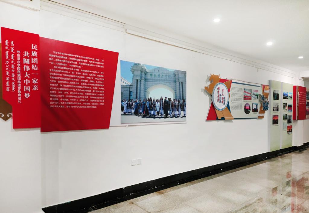 為深入學習貫徹習近平總書記關于民族工作的重要論述,扎實做好民族團結宣傳教育和民族團結進步創建工作,切實推進社會主義核心價值觀的培育和踐行,結合我校民族團結進步宣傳月活動,為進一步宣傳黨的民族政策,展示我校在民族團結進步創建活動中取得的成果,推動我校民族團結進步創建活動深入持久開展,9月6日學校黨委宣傳部、統戰部在藝術樓一樓舉辦了主題為“民族團結一家親、共圓偉大中國夢——呼倫貝爾學院民族團結進步教育巡禮”主題展覽。