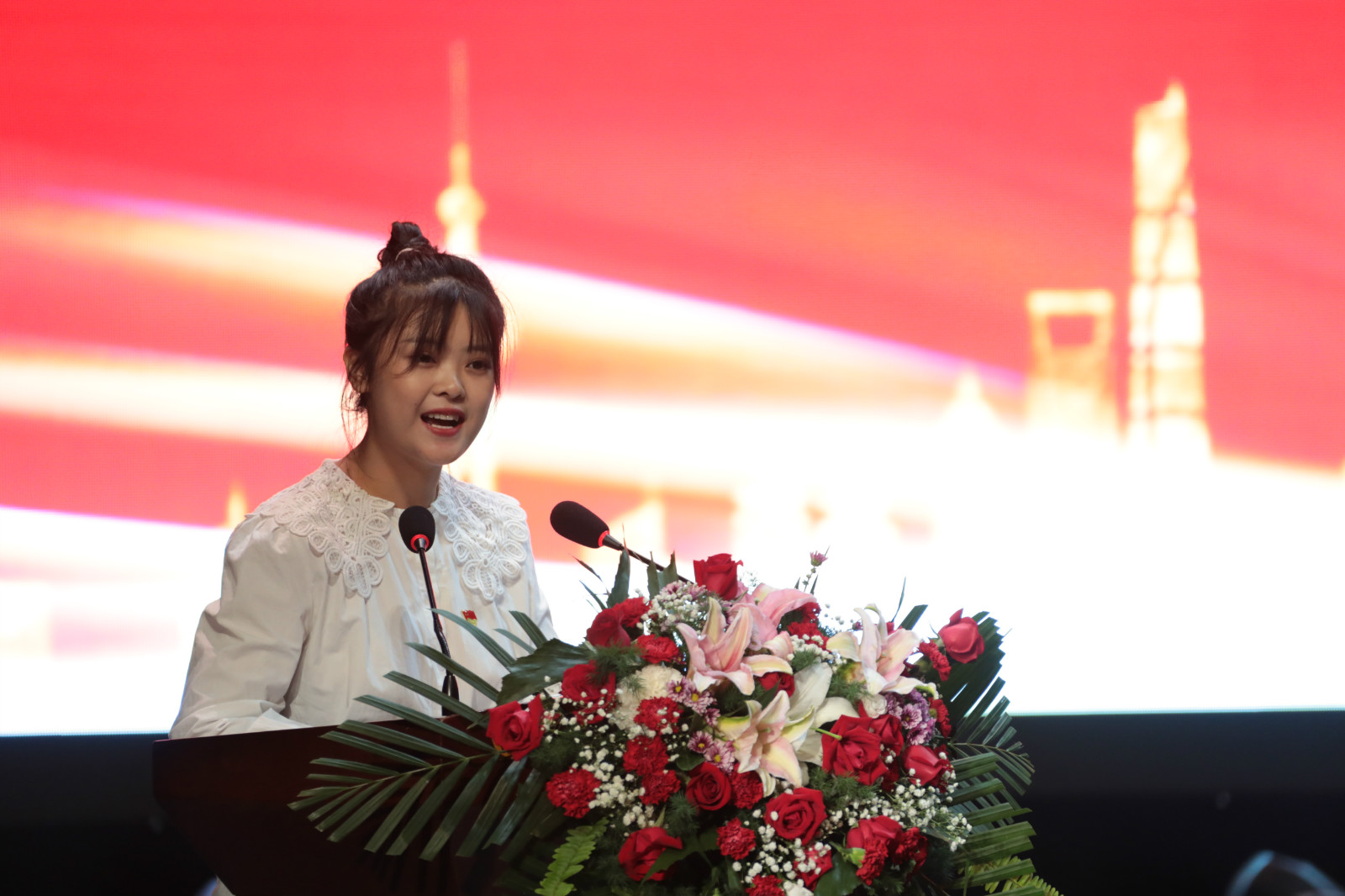 在熱烈的掌聲中,受表彰的集體和個人代表有秩序地走上主席臺領獎,幸福洋溢在每位獲獎代表的笑靨上。外國語學院董瑞秋同學作為學生代表向全體教師送上節日的祝福。2020年自治區高校優秀思想政治理論課教師何耀云教授和2019年自治區高校教學名師斯仁巴圖教授與在場全體師生分享了作為一名教師的榮耀與責任。