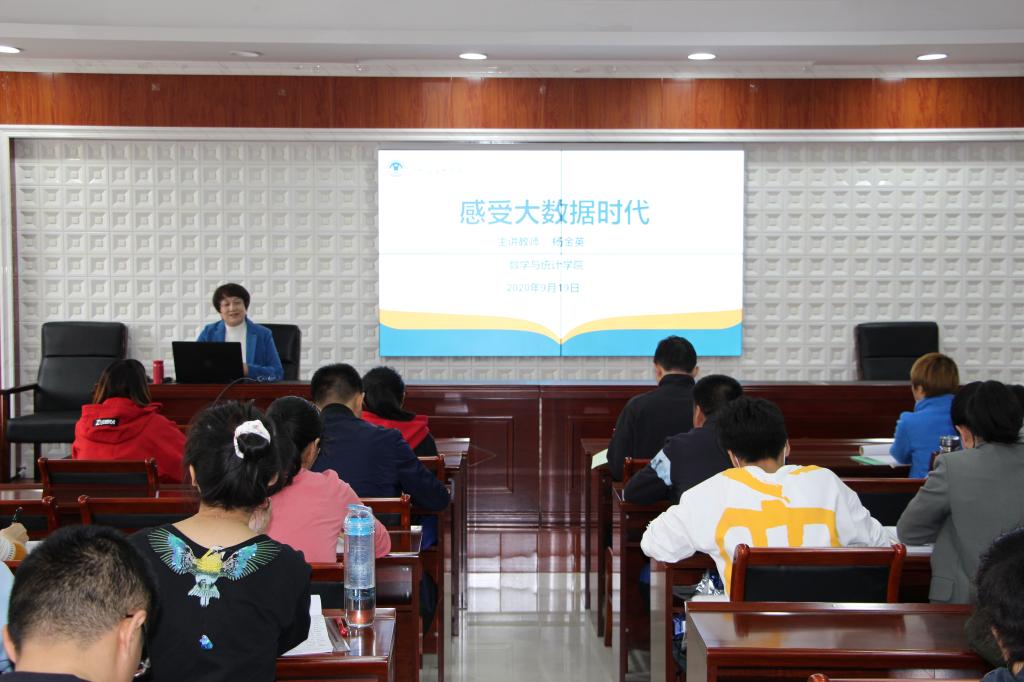 會后,數學與統計學院楊金英教授做了《感受大數據時代》的講座,我校2020年“送教到校”為全市培訓3500多名高中教師的工作正式開始。