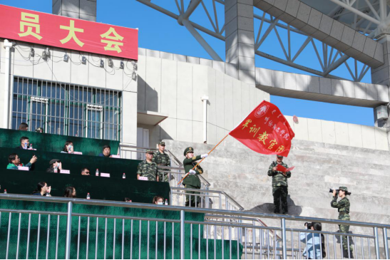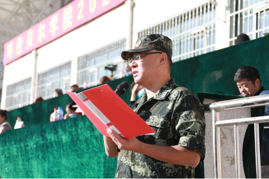 會(huì)上,承擔(dān)本次軍訓(xùn)任務(wù)的教官代表及軍訓(xùn)學(xué)員代表分別發(fā)了言。最后,學(xué)生工作處處長(zhǎng)、武裝部部長(zhǎng)李健為呼倫貝爾學(xué)院民兵應(yīng)急營(yíng)軍訓(xùn)團(tuán)授旗。