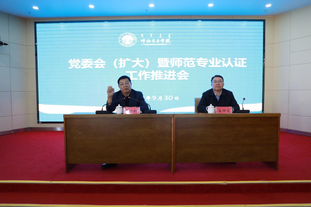 9月30日,學校黨委召開擴大會議,推進師范類專業認證工作,校黨委書記王廣利,黨委委員、副校長烏云達來、孟祥宏,黨委委員、組織部部長吳靜怡,黨委委員、統戰部部長張樹福,學校各職能部門負責人,19個師范類專業學院黨總支書記、院長、主管教學副院長,師范專業系主任、專業負責人參加會議。會議由孟祥宏副校長主持。
