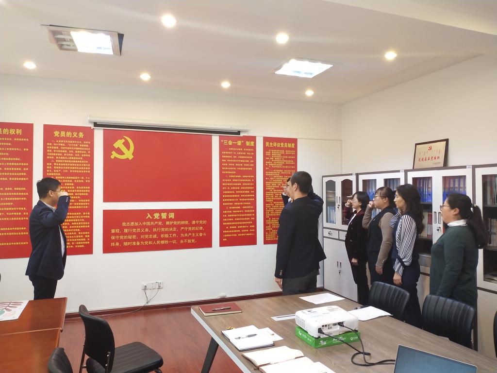 會上,機關黨委統戰委員宋艷波同志宣讀了新黨員名單,機關黨委副書記高巖同志帶領新黨員莊嚴宣誓、老黨員重溫入黨誓詞,機關黨委宣傳委員張陽同志為新黨員佩戴了黨徽。