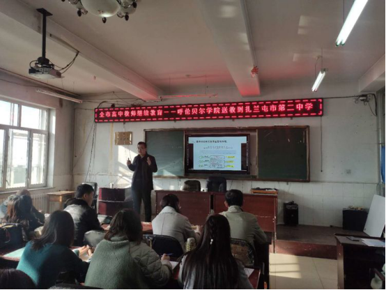 10月9日至11日,我校聘請了7位優(yōu)秀教師到扎蘭屯市一中、二中、職業(yè)高中三所學(xué)校,開展了“送教到?!迸嘤?xùn)活動(dòng),共有400多名教師參加培訓(xùn)。