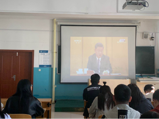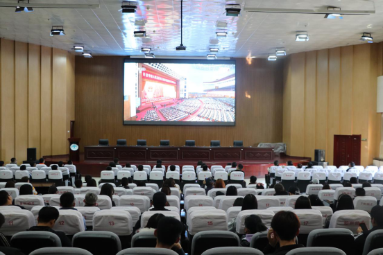 10時,學校領導班子、職能部門黨員干部以及二級學院師生分別在崇文樓A座201會議室、圖書館四樓報告廳、各部門、各二級學院會議室、教室、宿舍等地通過多種形式準時收聽收看了大會盛況。