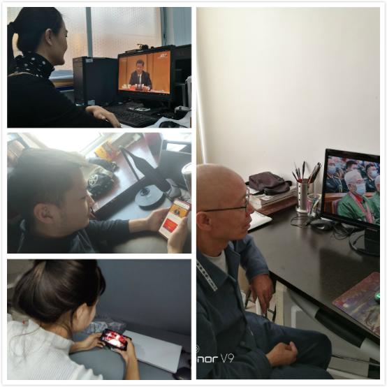 學校部分師生通過電腦、手機等形式在辦公室、家、宿舍觀看直播