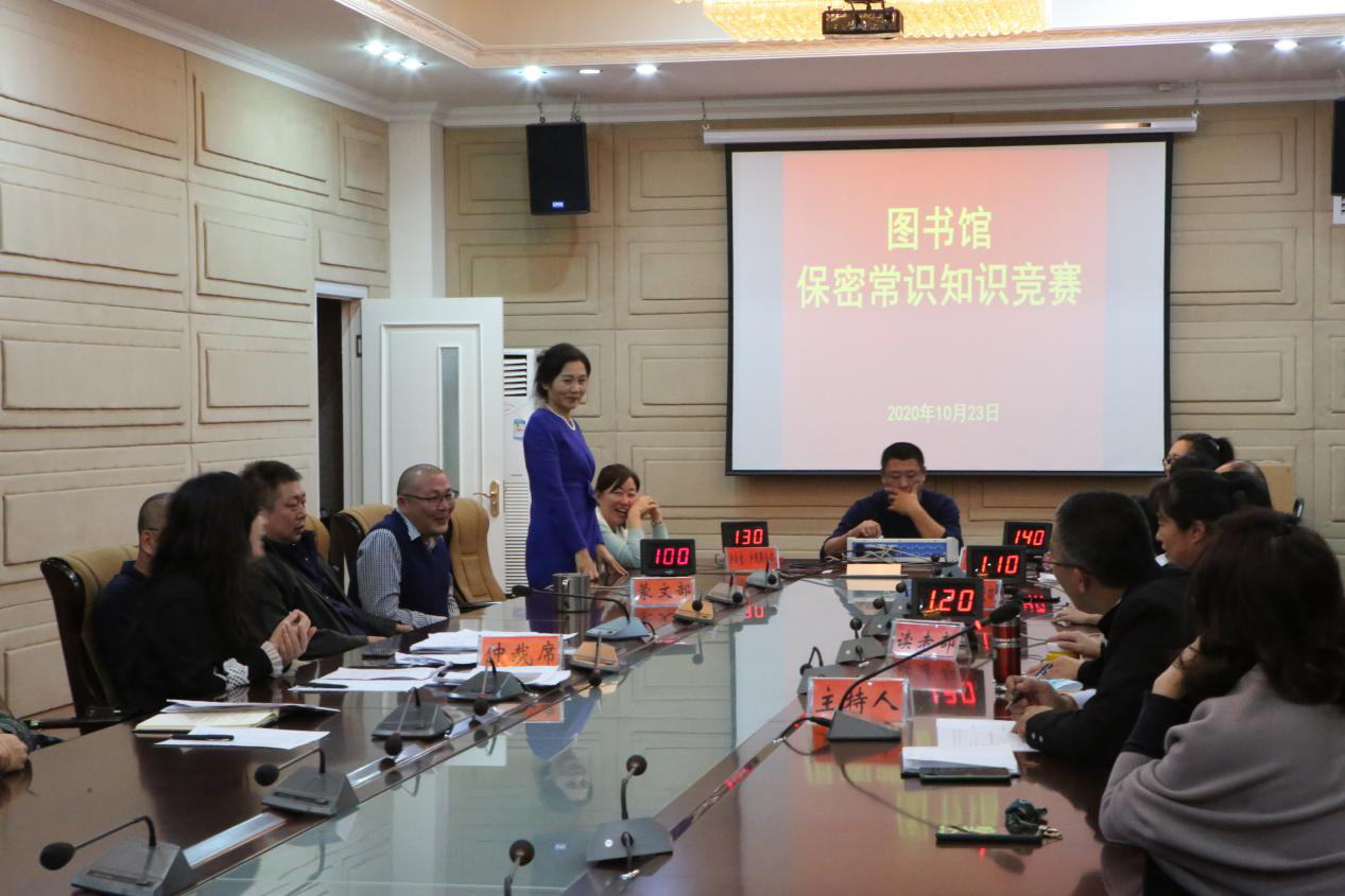 隨后,進行了別開生面的保密法知識競賽。競賽選手由圖書館各部門為單位分為五組,以必答題和搶答題的形式進行。在必答題環節,各組圓滿得分,顯示出我館各部門職工對保密法學習的重視;扣人心弦的搶答題環節,各組選手都認真聽題、迅速搶答、激烈角逐,主持人也不失幽默地與觀眾職工進行互動答題,整個競賽過程緊扣主題、緊張刺激、緊鑼密鼓。最終,參考、信息聯合部奪得了本次競賽的第一名,其他四組選手分獲二、三名。