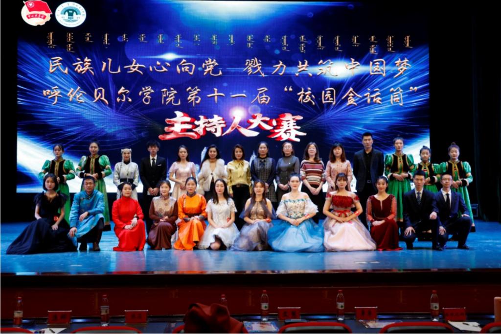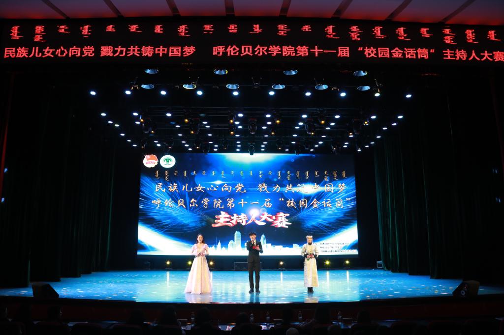 11月15日下午,“民族兒女心向黨,勠力共筑中國夢”我校第十一屆“校園金話筒”主持人大賽在藝術(shù)樓演播廳圓滿落幕。呼倫貝爾市電視臺《身邊新聞》主持人張蕊,校團委教師康娜,蒙古學(xué)學(xué)院教師文慧,傳媒學(xué)院教師單單、烏云格日樂擔(dān)任大賽評委,校團委副書記格根塔娜觀看比賽。