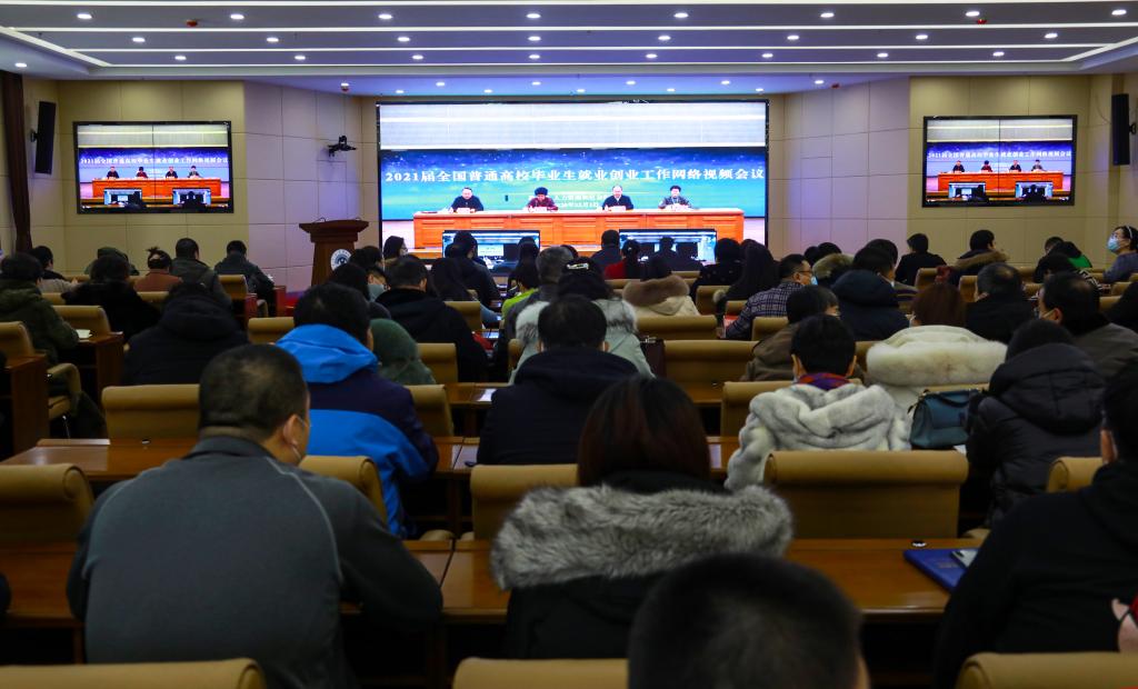 12月1日上午,我校組織學校全口徑就業工作人員參加了教育部、人力資源社會保障部聯合舉辦的2021屆全國普通高校畢業生就業創業工作網絡視頻會議。參加會議的有校黨委副書記、校長王曙光,黨委委員、副校長孟祥宏,團委、教務處、學生工作處負責人,各學院班子成員、團學辦公室主任、全體畢業班班主任與輔導員以及招生就業處全體工作人員。