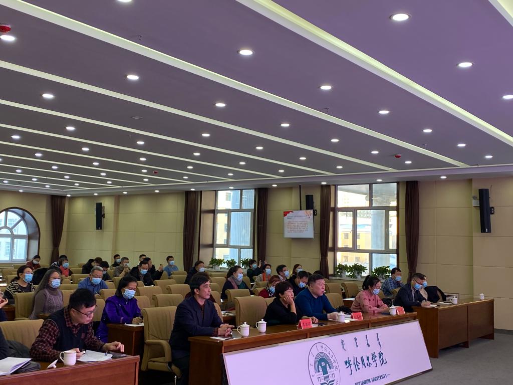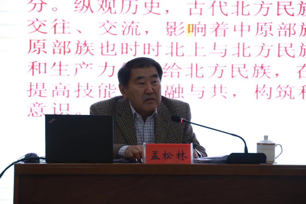 12月11日上午,我校邀請中國社科院蒙古族源研究中心常務副主任孟松林教授在崇文樓A201會議室做了“縱觀歷史 深刻理解鑄牢中華民族共同體意識”的專題講座。呼倫貝爾學院副校長敖特根;科學技術處處長田振江;呼倫貝爾市文旅廣局黨組成員、副局長包海明;呼倫貝爾市文旅廣局非遺科科長李穎婷;呼倫貝爾市文旅廣局非遺科四級主任科員潘斐;民族歷史文獻中心主任斯仁巴圖;及各學院負責人、教師代表參加了講座。講座由副校長敖特根主持。