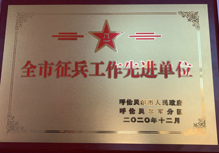 12月18日上午,在呼倫貝爾市兵員征集、潛力調查暨基層武裝部建設總結表彰會中,我校被呼倫貝爾市人民政府、呼倫貝爾軍分區授予“全市征兵工作先進單位”榮譽稱號。