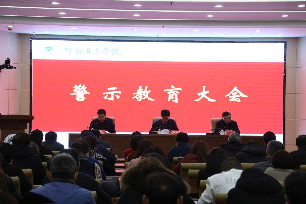 為進一步貫徹落實自治區紀委監委在全區深入開展警示教育工作的部署,落實以案明紀,教育引導全校黨員干部牢記初心使命、強化責任擔當,知敬畏、存戒懼、守底線,推動學校全面從嚴治黨不斷向縱深發展,12月17日下午,學校召開全校領導干部警示教育大會。全校副處級以上領導干部等140余人參加大會。校黨委副書記張國棟主持會議。