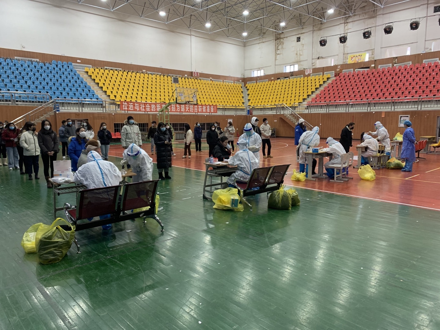 此次核酸檢測采用咽拭子采集方式,檢測現場檢測人員和教師分工有序,全體參與核酸檢測學生佩戴口罩,10人一組填寫表格、領取標本盒、信息核對、標本采集、離場,整個過程有條不紊。共有4700余名學生進行了檢測。