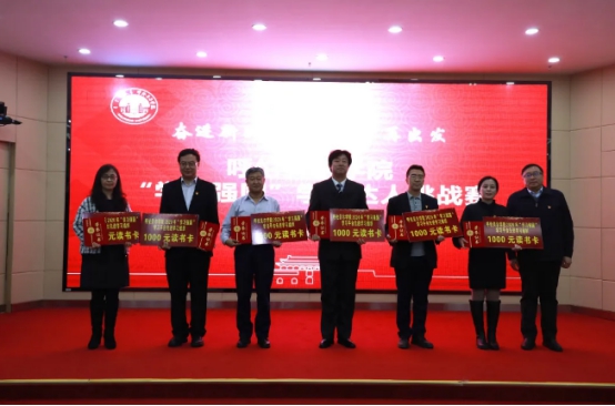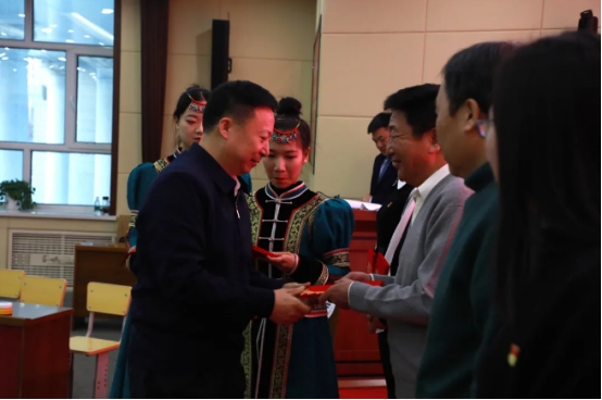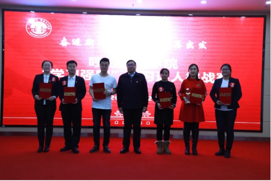 在頒獎環節,學校黨委副書記張國棟通報了我校在“學習強國”內蒙古學習平臺表彰活動中的獲獎情況,宣讀了我校2020年“學習強國”學習平臺先進組織和先進個人的表彰決定及獲獎名單,并為先進學習組織代表頒發了榮譽證書和讀書卡。與會領導為獲得“學習強國”學習平臺先進學習個人的14名先進代表頒發了榮譽證書。同時也為本次比賽獲獎集體和個人頒發了獎杯和證書。