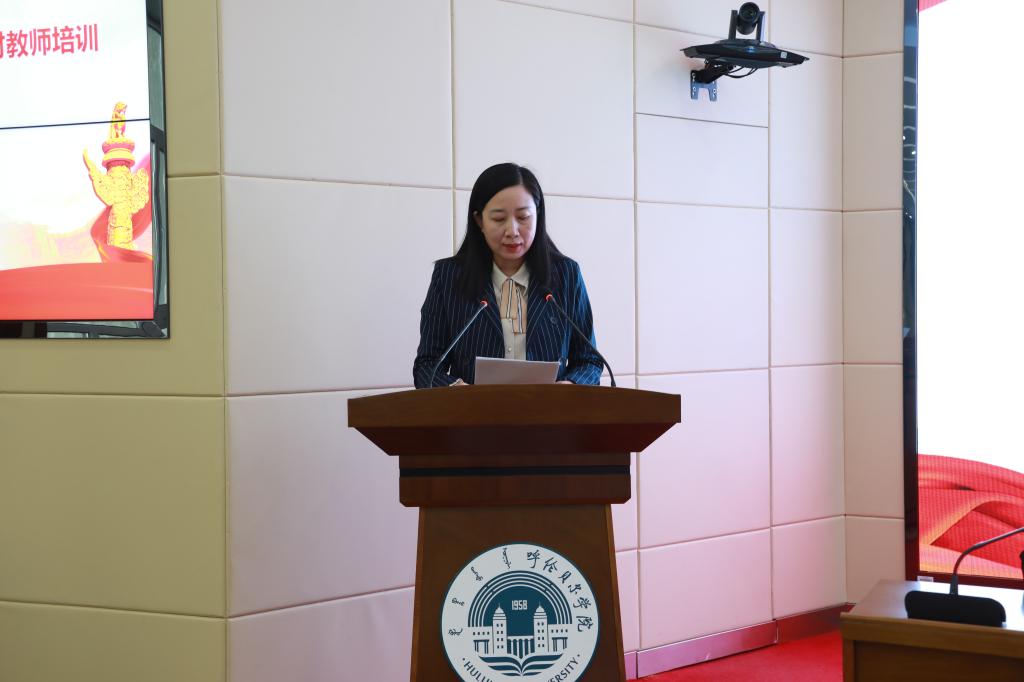 王曙光校長指出,呼倫貝爾學院作為呼倫貝爾市唯一一所以師范專業為主的本科院校,承擔了此次培訓的任務,感覺責任重大,使命光榮。作為培訓單位,呼倫貝爾學院一定傾全校學科人才和專業優勢,盡最大可能滿足培訓條件,要把鑄牢中華民族共同體意識體現在行動上,落實到工作中,與呼倫貝爾市教育局、哈爾濱師范大學一起,推進黨中央決策部署落地落實,助力統編“三科”教材的推廣使用,為辦好呼倫貝爾市人民滿意的基礎教育打好基礎。
