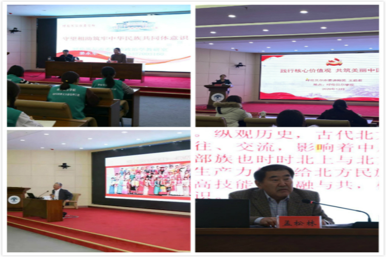 2020年12月16日,“全面深入領(lǐng)會(huì)習(xí)近平總書記關(guān)于民族工作系列重要論述精神,全力推進(jìn)我校鑄牢中華民族共同體意識(shí)各項(xiàng)工作”的專題講座在呼倫貝爾學(xué)院音樂廳舉行,學(xué)校黨委書記王廣利深入闡釋習(xí)近平總書記關(guān)于民族工作重要論述,并結(jié)合學(xué)校實(shí)際就如何做好新時(shí)代民族工作,鑄牢中華民族共同體意識(shí)做動(dòng)員報(bào)告。像這樣的講座,2020年呼倫貝爾學(xué)院已經(jīng)舉辦多場(chǎng),學(xué)校邀請(qǐng)呼倫貝爾市委黨校姜永軍副教授、呼倫貝爾市委講師團(tuán)王茹君團(tuán)長(zhǎng)等校外專家學(xué)者走進(jìn)校園,學(xué)校民族歷史文化研究院孟松林教授、常海教授、歷史文化學(xué)院趙金輝副教授、馬克思主義學(xué)院程欣老師等也分別從歷史和現(xiàn)實(shí)等不同角度,通過線上和線下的方式為學(xué)校領(lǐng)導(dǎo)干部、黨外知識(shí)分子和青年學(xué)生作專題輔導(dǎo)講座。