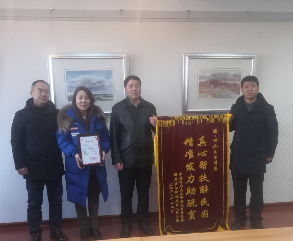 2月6日上午,阿榮旗得力其爾鄂溫克族鄉黨委書記張福山一行三人來到我校,送來了印有“真心幫扶解民困精準發力助脫貧”的錦旗和一封感謝信。在逸夫樓3樓會議室,學校黨委委員、副校長烏云達來,黨委委員、組織部部長吳靜怡與張福山書記一行人進行了座談。