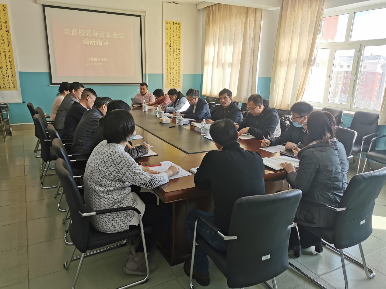 聽取匯報后,敖特根副校長對工程技術學院過去取得的工作成績給予了充分肯定。他表示,工程技術學院班子能夠凝聚共識、勇于擔當,牽頭做好學院“十四五”規劃。同時他要求工程技術學院要以“學科建設為龍頭、科研為引領、教學為中心、服務地方為重點”發展理念,進一步凝練學科方向,抓好學科特色建設,做好長期發展規劃,并充分利用學科優勢,做強學科優勢,成為服務地方的主力軍。