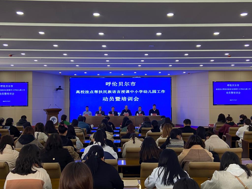 3月13日上午,呼倫貝爾市高等院校掛點幫扶民族語言授課中小學幼兒園工作動員暨培訓會在我校舉行。