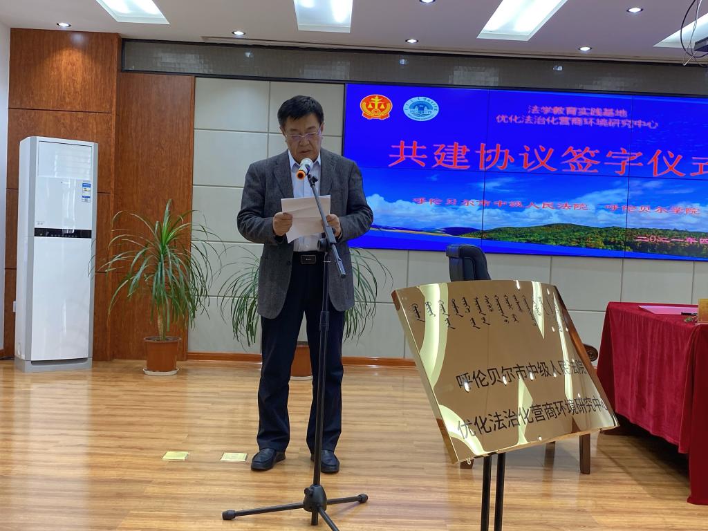 4月13日,呼倫貝爾市中級人民法院與我校在市中院舉行“呼倫貝爾市中級人民法院優化法治化營商環境研究中心”和“呼倫貝爾學院法學教育實踐基地”協議簽字儀式暨揭牌儀式。我校黨委書記王廣利,黨委委員副校長孟祥宏,呼倫貝爾市中級人民法院黨組書記、院長范巧蘭,黨組副書記、副院長李國武,副院長朱傳湖,徐巖,斯琴高娃,孫立鳴,我校相關負責人及教師學生代表。活動由李國武副院長主持。