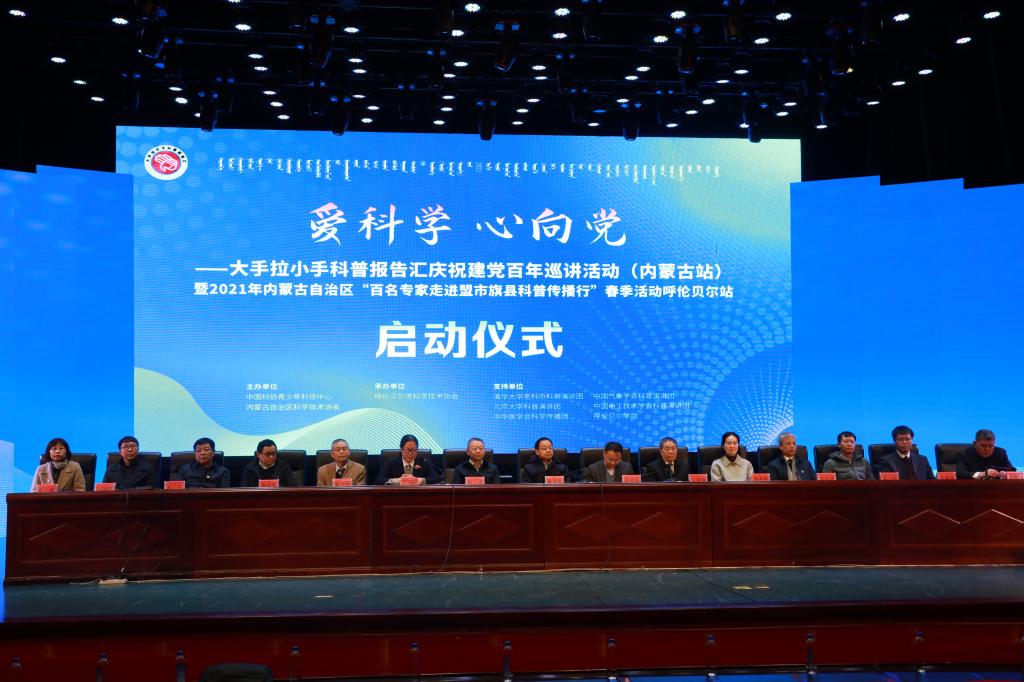 啟動儀式上,內(nèi)蒙古自治區(qū)科學(xué)技術(shù)協(xié)會主席趙吉為呼倫貝爾學(xué)院“內(nèi)蒙古自治區(qū)科普教育基地”授牌,并宣布活動正式啟動。