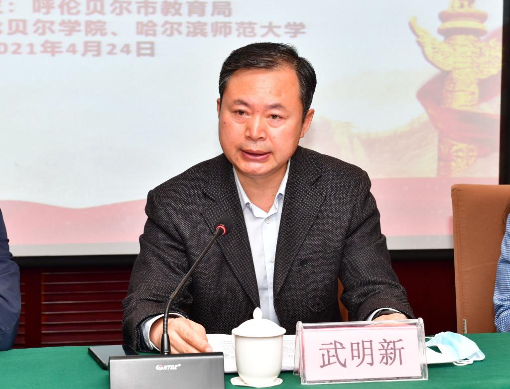 4月24日上午,呼倫貝爾市民族語(yǔ)言授課學(xué)校三科統(tǒng)編教材教師教育教學(xué)能力提升培訓(xùn)班在我校正式開(kāi)班。我校黨委委員、副校長(zhǎng)閆立志,呼倫貝爾市教育局黨組成員、副局長(zhǎng)武明新,繼續(xù)教育學(xué)院直屬黨支部書(shū)記何平、院長(zhǎng)莎茹莉出席開(kāi)班儀式。哈爾濱師范大學(xué)8名授課專(zhuān)家、呼倫貝爾市教育局相關(guān)科室負(fù)責(zé)人、培訓(xùn)班班主任以及呼倫貝爾市15所民族語(yǔ)言授課學(xué)校三科在崗教師210人參加了開(kāi)班儀式。開(kāi)班儀式由何平主持。