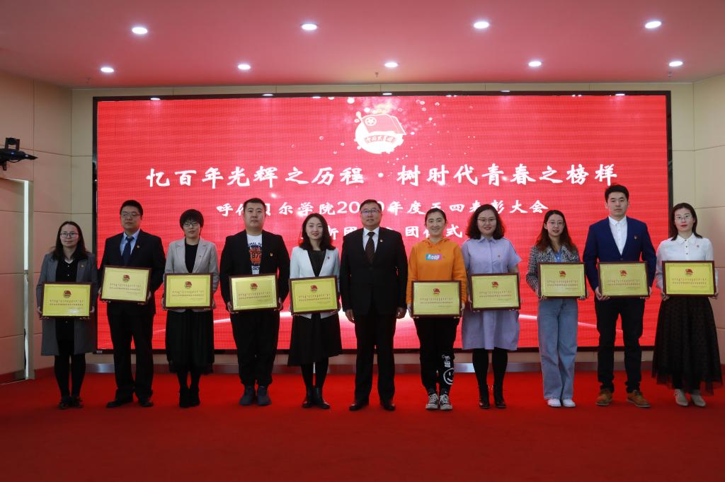 會議第二環節進行五四表彰大會。首先由團委書記郝新君宣讀《呼倫貝爾學院2020年度五四表彰決定》《呼倫貝爾學院2020年度大學生“自強之星”表彰決定》,在歡快的進行曲中獲獎代表上臺領獎。外國語學院團總支書記王巍、經濟管理學院學生趙書毓代表獲獎集體和個人發言。