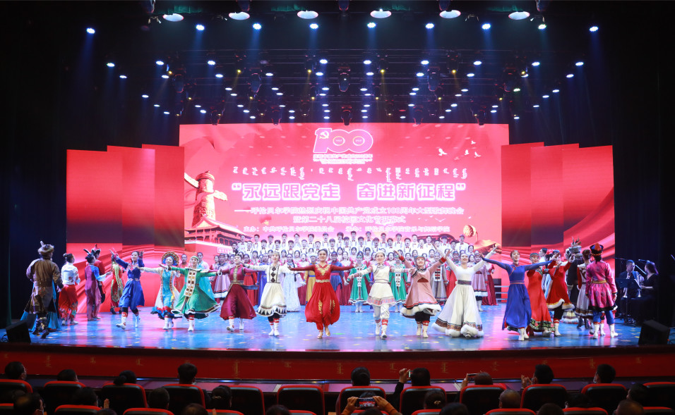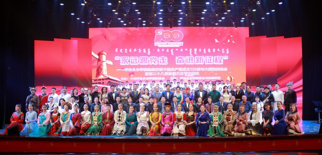 4月26日晚7點,由中共呼倫貝爾學院委員會主辦,音樂與舞蹈學院承辦的“永遠跟黨走奮進新征程”呼倫貝爾學院熱烈慶祝中國共產黨成立100周年大型歌舞晚會暨第二十八屆校園文化藝術節開幕式在藝術樓音樂廳隆重舉行。呼倫貝爾市委宣傳部副部長劉立東,呼倫貝爾市委宣傳部文化科科長閆士和、文化科干部何宏宇,校黨委書記王廣利,黨委委員、紀委書記、自治區監察委員會駐呼倫貝爾學院監察專員岳勇,黨委委員、副校長閆立志,黨委委員、組織部部長吳靜怡,黨委委員、宣傳部部長劉秀蘭,黨委委員、統戰部部長張樹福,我校副處級以上干部以及教師黨員代表600余人觀看了晚會。