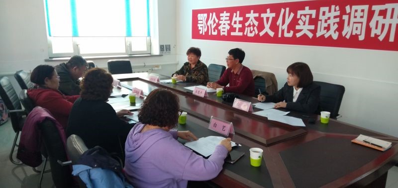 調研組按照課題計劃要求,在鄂倫春旗民族研究會的大力支持下,前往鄂倫春旗文化館、鄂倫春旗林業局、旗環保局、旗發改委、旗民委、烏魯布鐵獵民村、訥爾克氣獵民村、多布庫爾獵民村、東大橋巖畫區等處進行了走訪、考察,與旗民族研究會學者、專家進行了學術交流,采訪了滿古梅、吳靈芝、內淑梅等老一代鄂倫春族非物質文化遺產傳承人,取得了充分的一手資料,同時收集了《鄂倫春研究》和鄂倫春族非遺方面的圖書資料,為該項課題的順利完成奠定了堅實基礎。