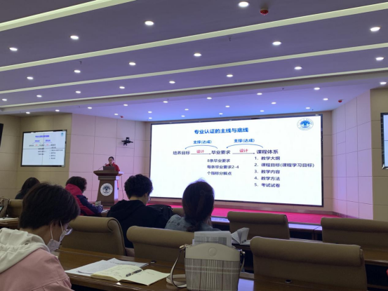 會(huì)上,吳紅艷老師對(duì)做好課程達(dá)成評(píng)價(jià)分析相關(guān)的工作與大家進(jìn)行了交流,對(duì)培養(yǎng)目標(biāo)、畢業(yè)要求、課程體系支撐與達(dá)成的關(guān)系進(jìn)行了系統(tǒng)的闡述,全面解析了基于OBE的課程教學(xué)大綱三掛鉤和如何做好達(dá)成評(píng)價(jià)分析以及畢業(yè)要求指標(biāo)點(diǎn)與教學(xué)環(huán)節(jié)的對(duì)照表、畢業(yè)要求的支撐矩陣等內(nèi)容。