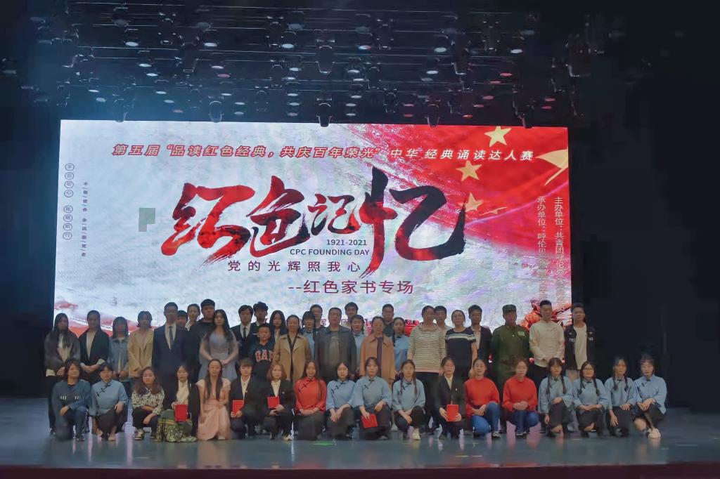 為慶祝中國共產黨成立100周年,重溫紅色經典,銘記中國共產黨一路走過的風風雨雨,緬懷先烈,5月15日,由共青團呼倫貝爾學院委員會主辦,文學院承辦的我校第五屆“品讀紅色經典,共慶百年榮光”中華經典誦讀達人賽決賽——紅色家書誦讀專場在藝術樓演播廳隆重舉行。本次比賽作為我校第二十八屆校園文化藝術節“禮敬中華?彰顯自信”弘揚中華優秀傳統文化系列活動的一部分,共有來自8個院系的15組參賽作品入圍。校團委副書記格根塔娜老師、校團委盛超老師、文學院李曉玲老師、烏恩其老師、武戰紅老師擔任評委。