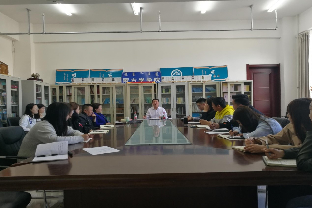 按照學(xué)校黨史學(xué)習(xí)教育安排和要求,5月20日下午,學(xué)校黨委委員、副校長烏云達(dá)來在崇文樓B座307會議室講授專題黨課。蒙古學(xué)學(xué)院師生黨員、部分重點積極分子參加。蒙古學(xué)學(xué)院黨總支書記烏云主持黨課。